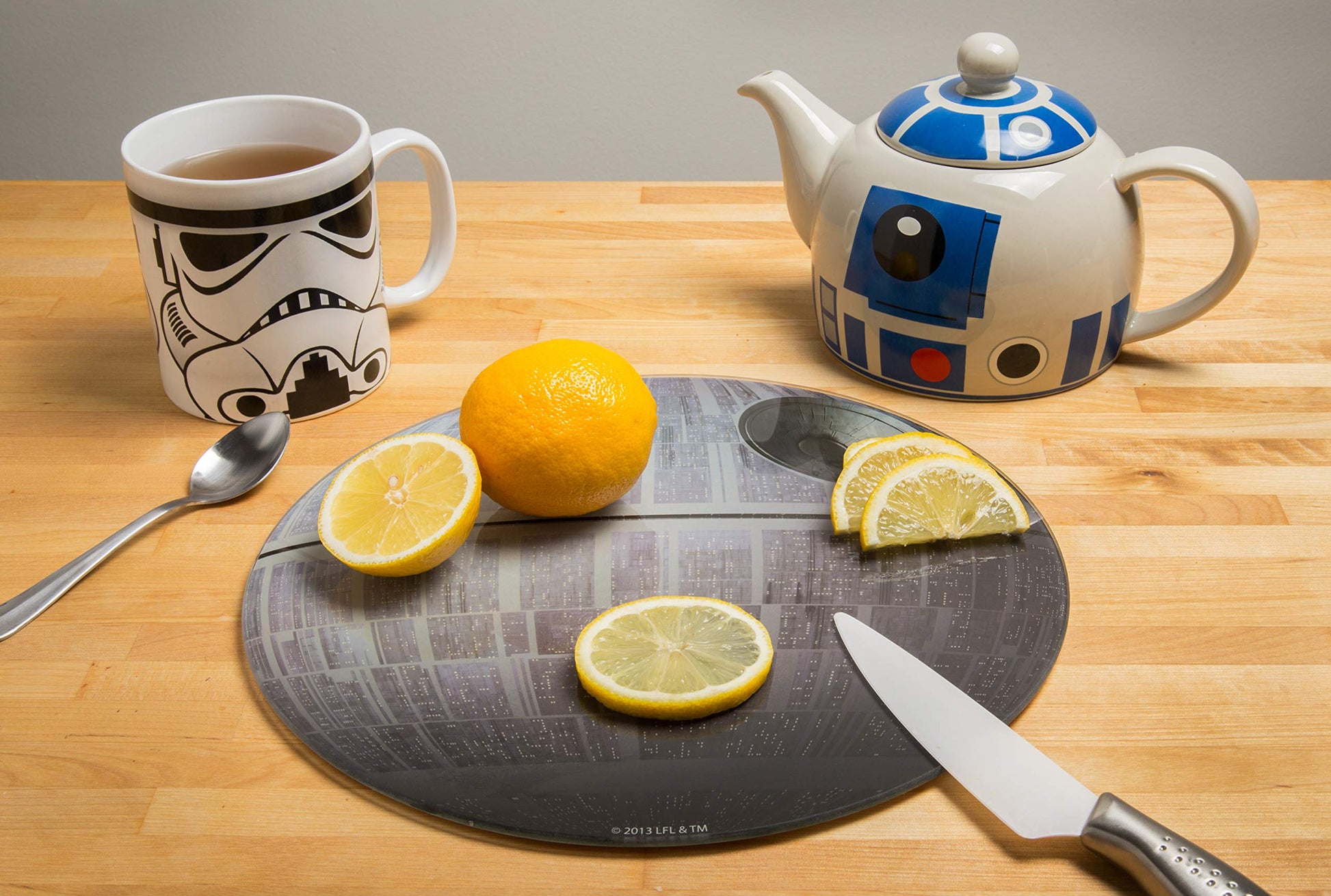 Acest tocator din sticla Star Wars in forma Death Star este o aditie extrem de fun in bucataria ta. Este rezistent la zgarieturi, se spala usor si nu lasa reziduuri in mancarea ta - cum se intampla in cazul tocatoarelor din plastic sau din lemn.